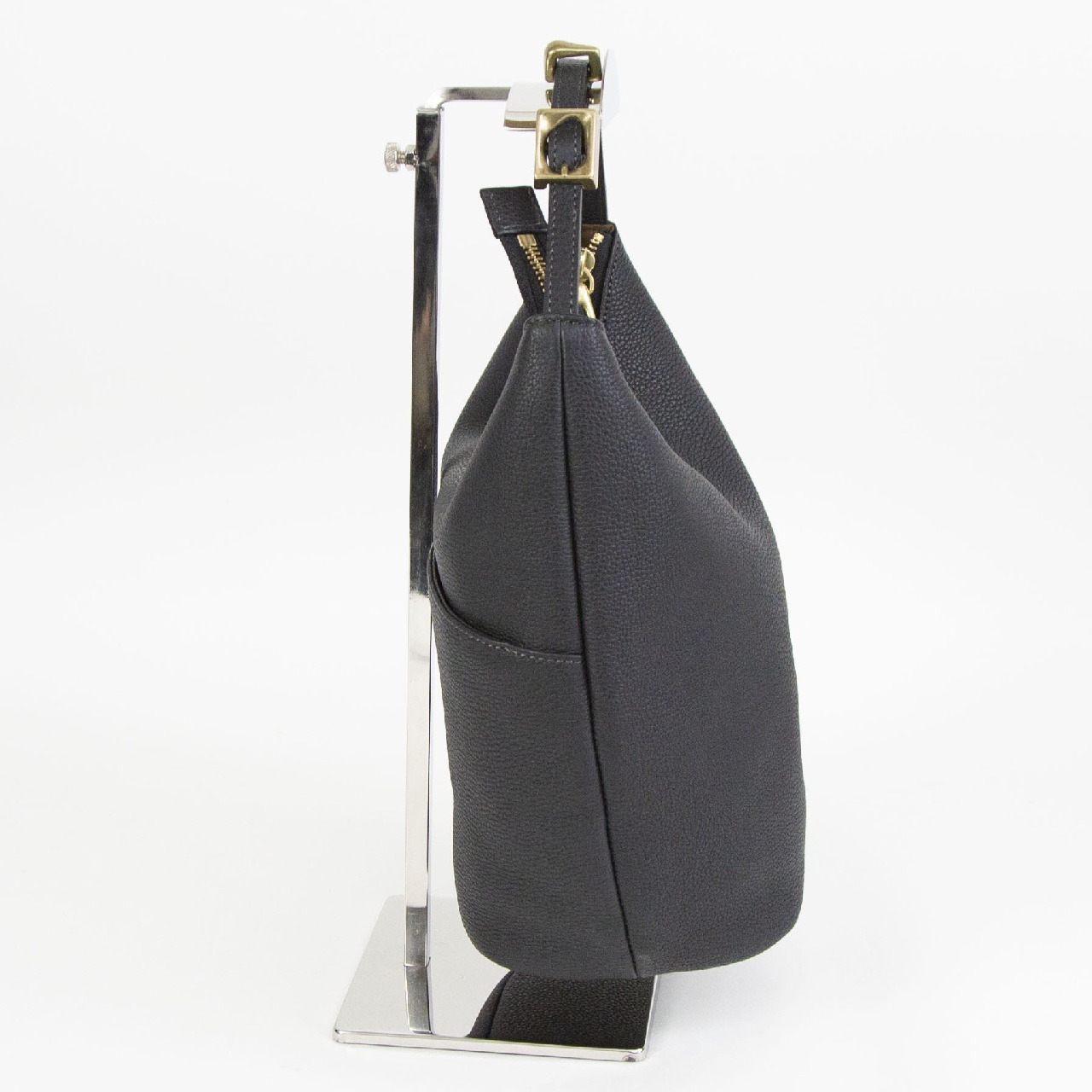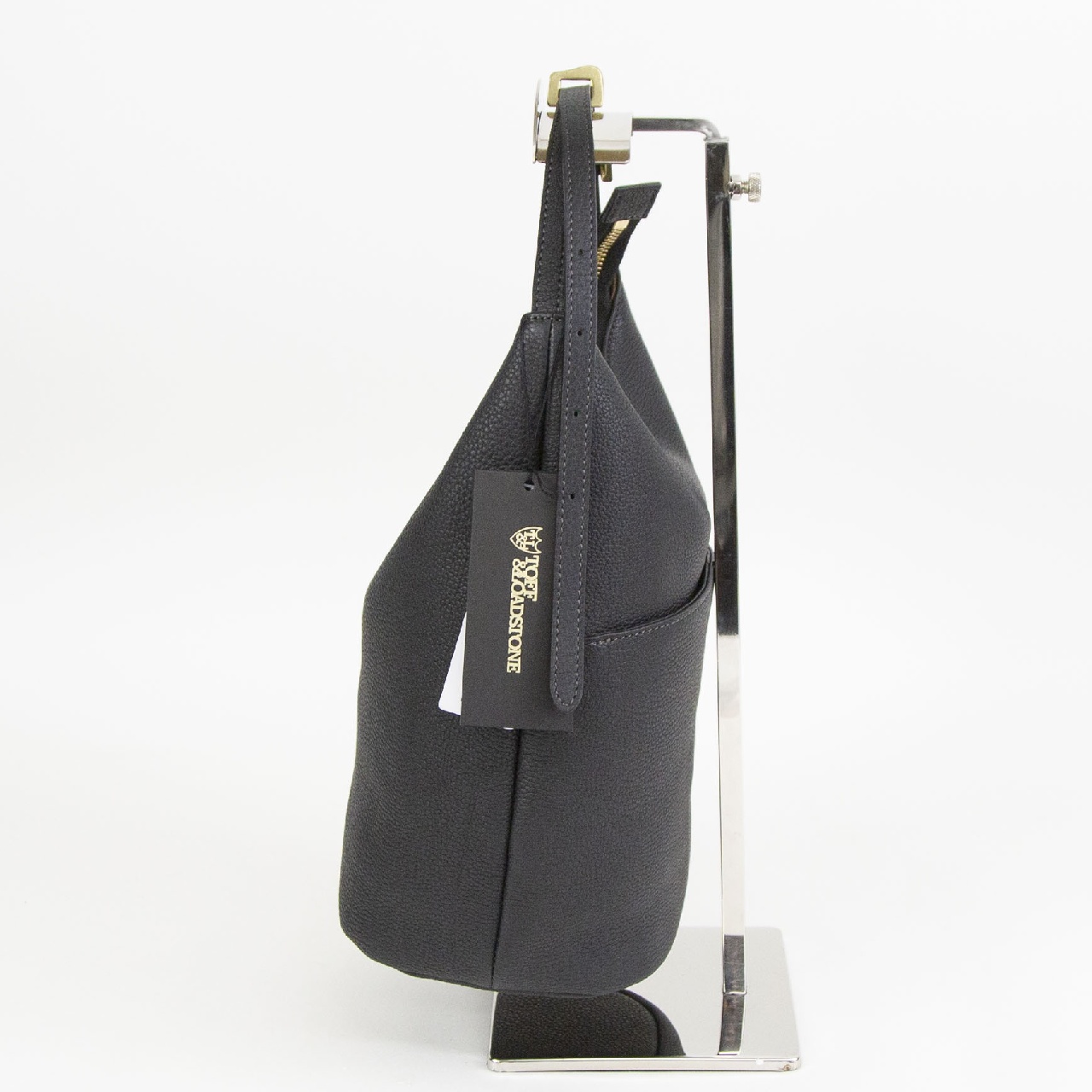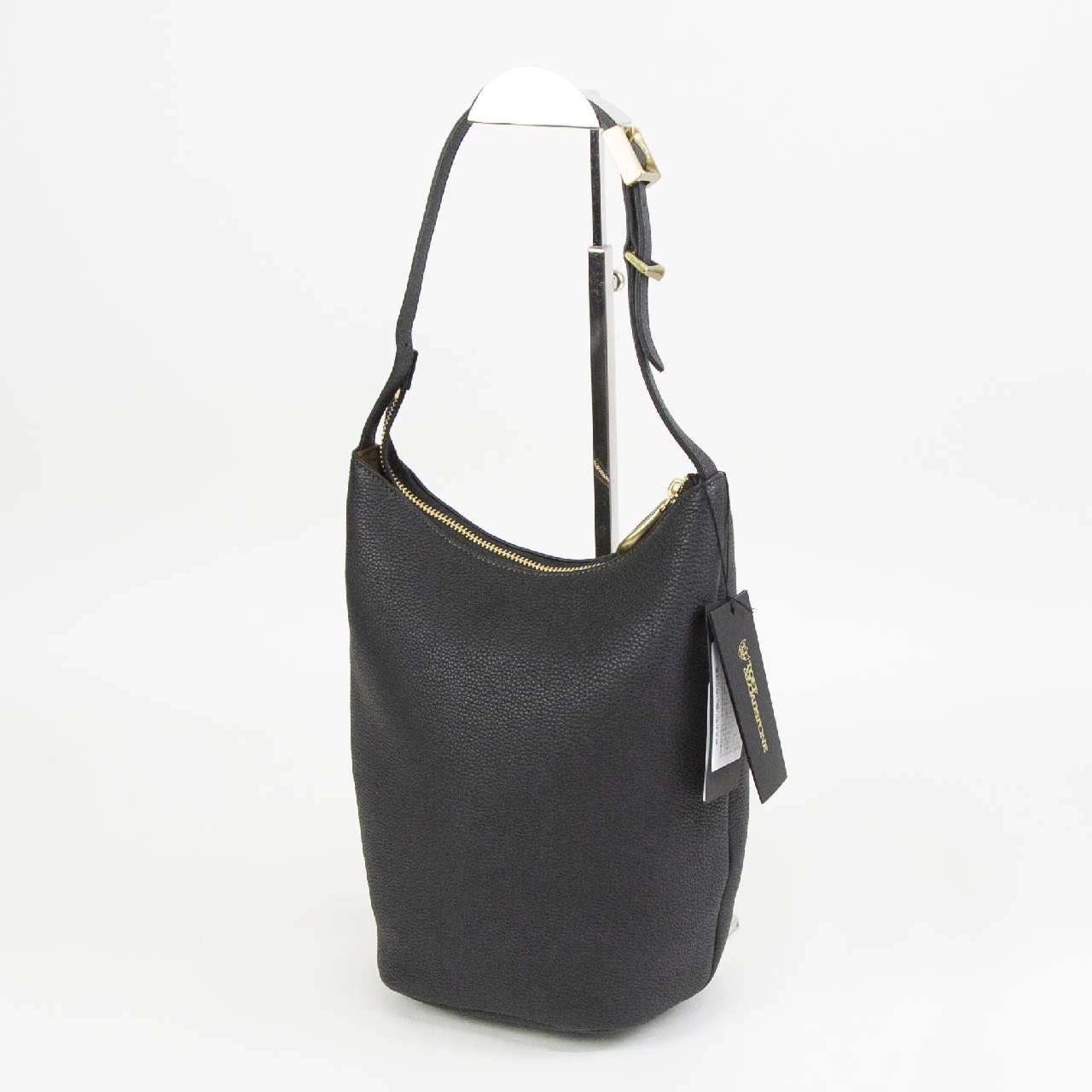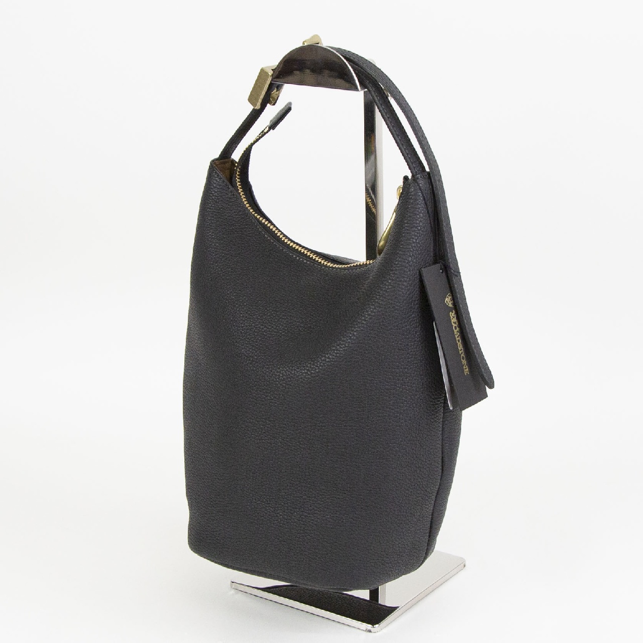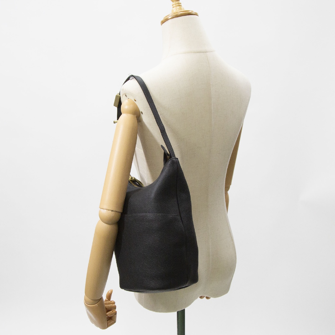 調整可能なハンドルは、肩に楽に掛けられる長さから、フォルムを変えると柔らかな素材を活かした三日月型のハンドバッグに。
