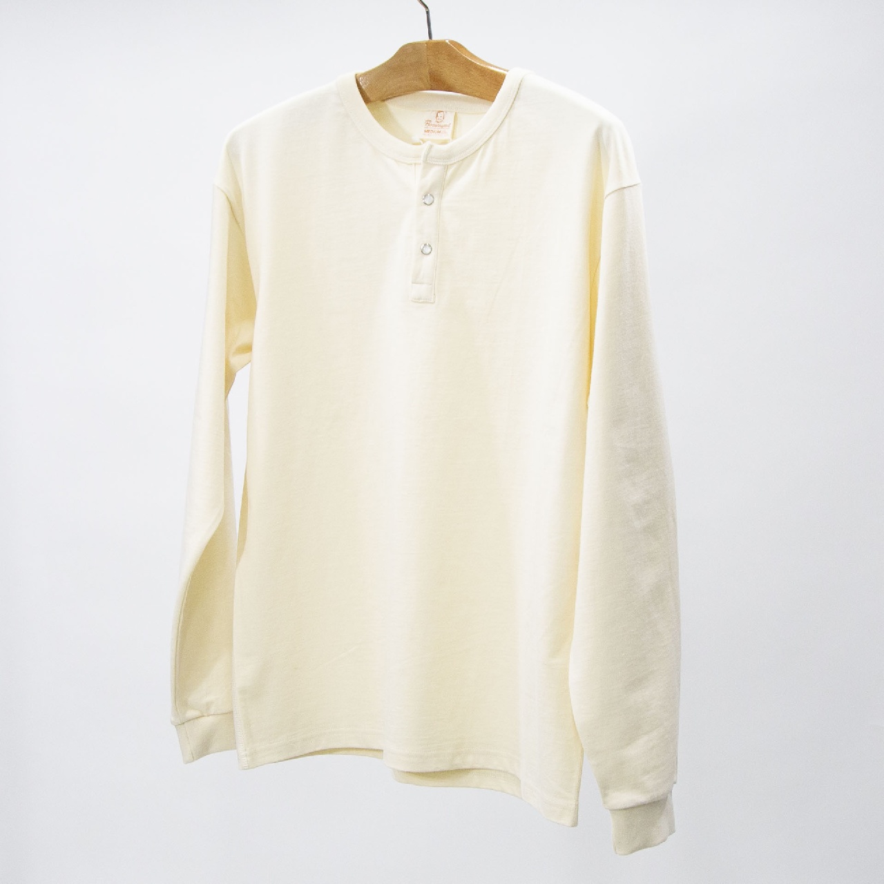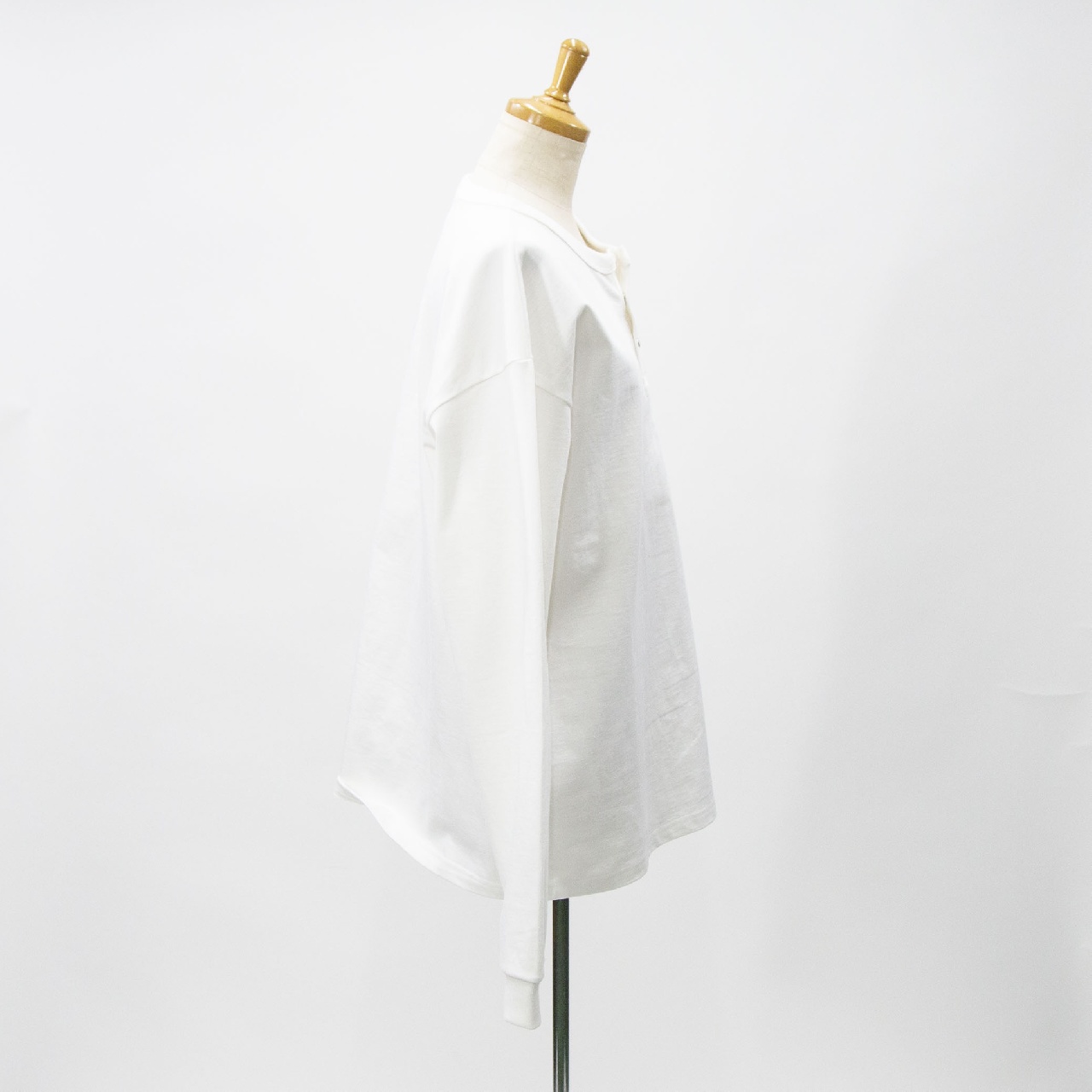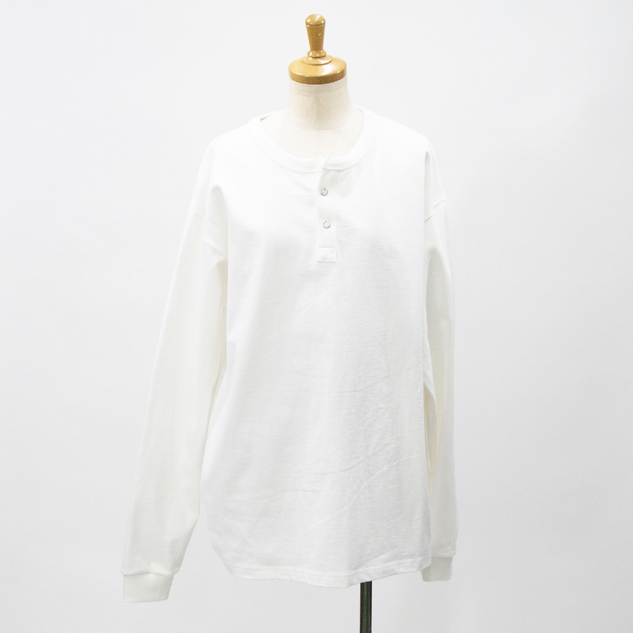 インナーにしても一枚で着てもハマるヘンリーネックタイプのロングスリーブ。