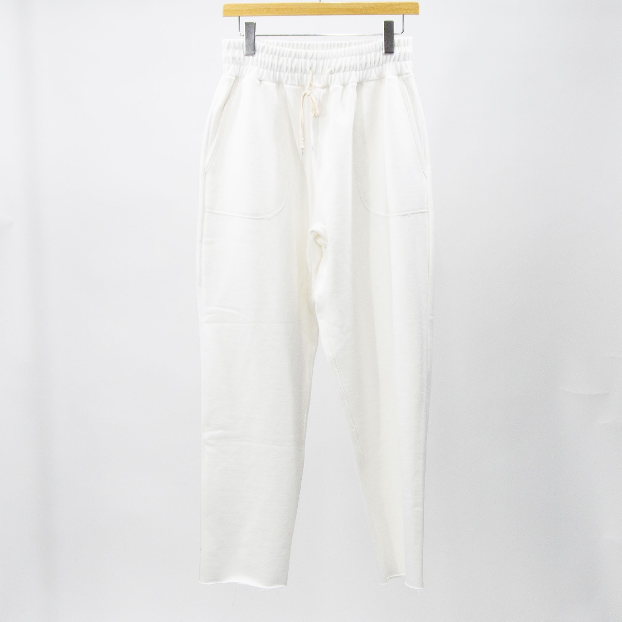 ファティーグパンツをベースに前面のポケットを排したステッチや切りっぱなしのデザインが特徴的な一本。