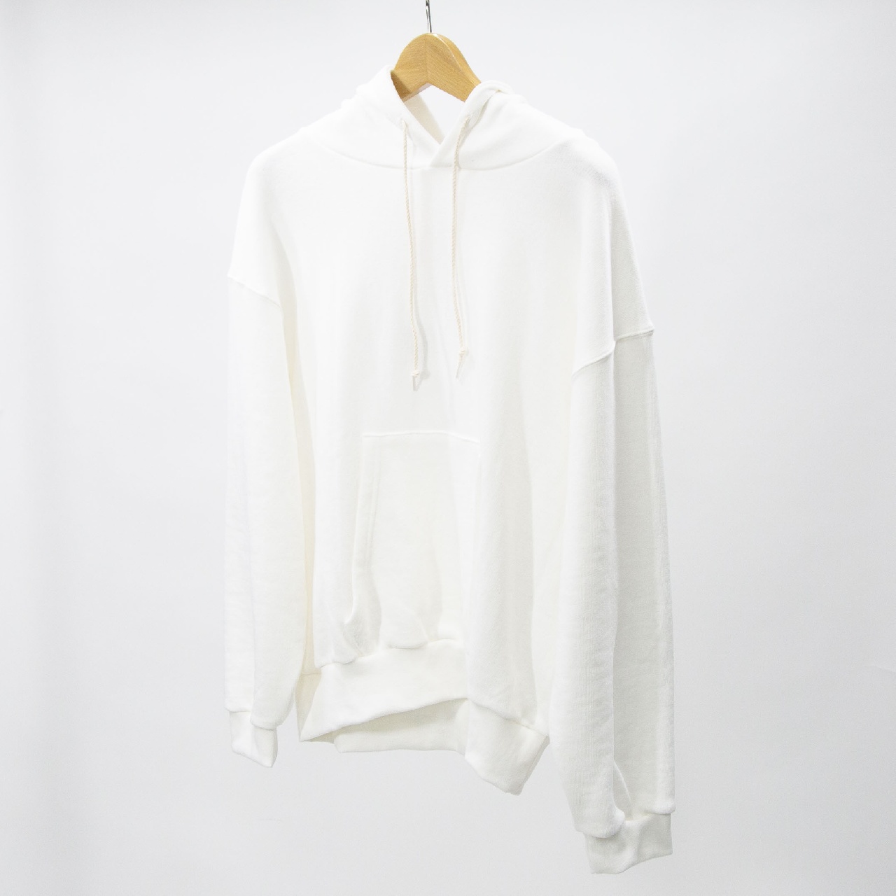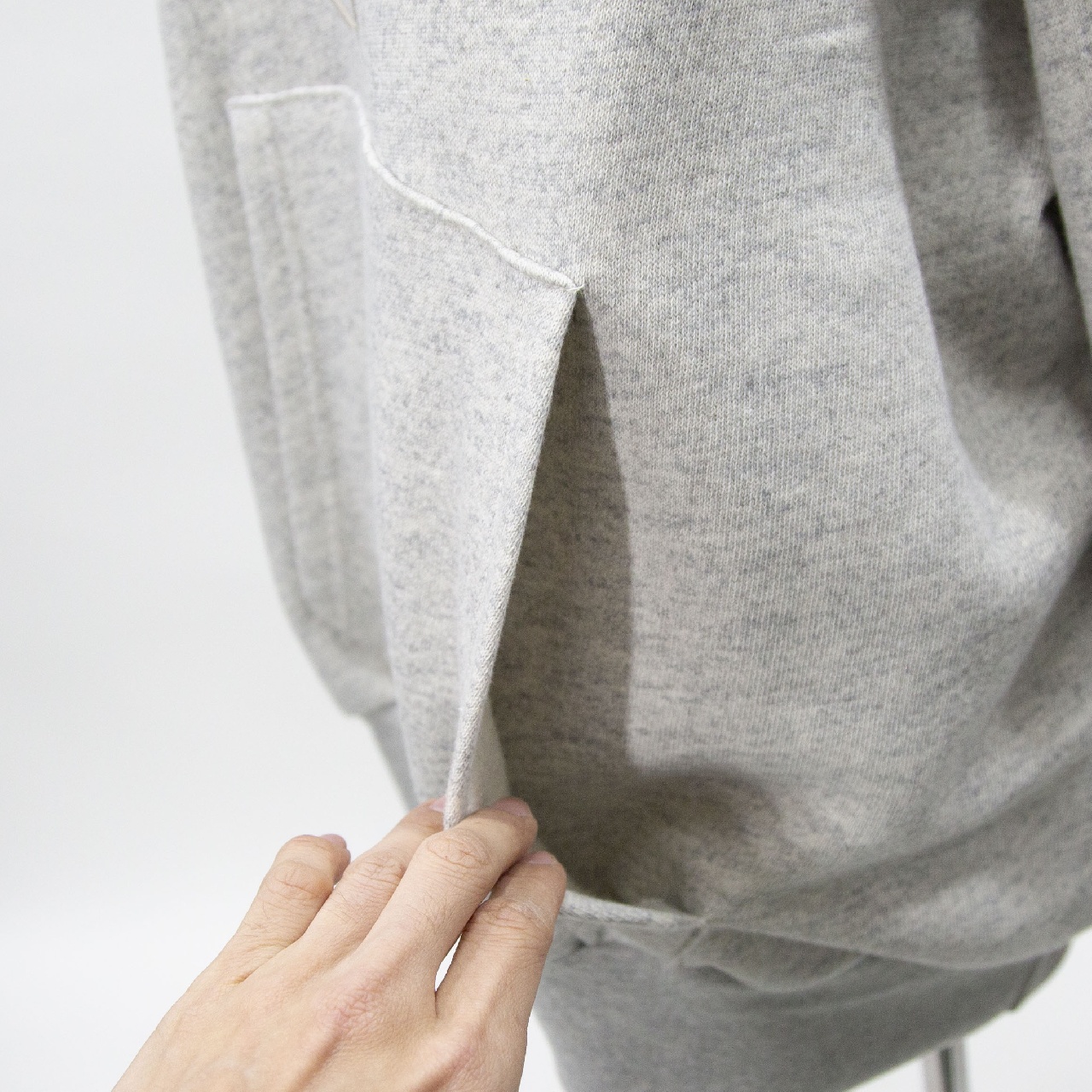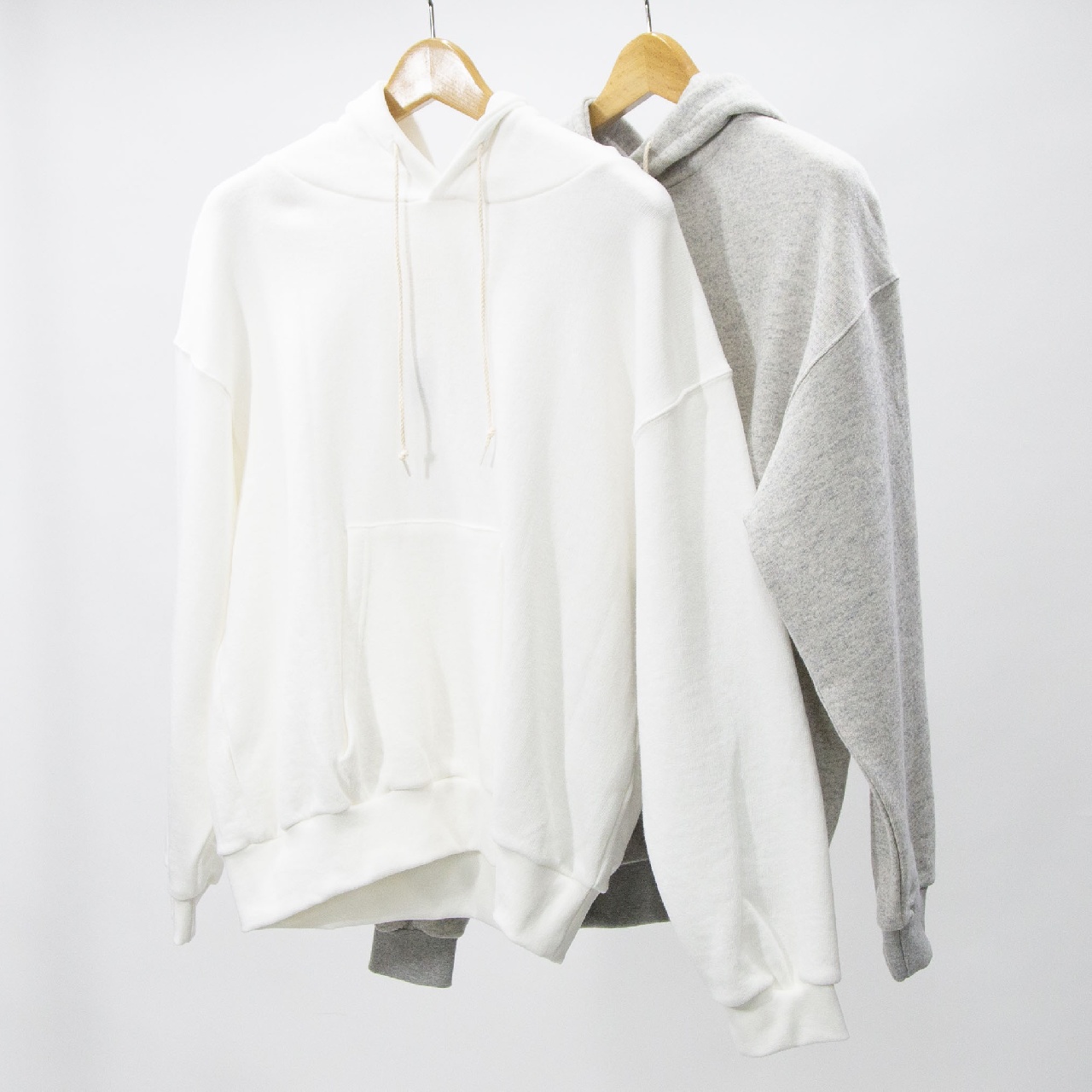 デザインはシンプルにオーソドックスなプルオーバータイプのパーカーですが、生地へのこだわりからずっと触れていたくなるようななめらかな質感が特徴の一点。