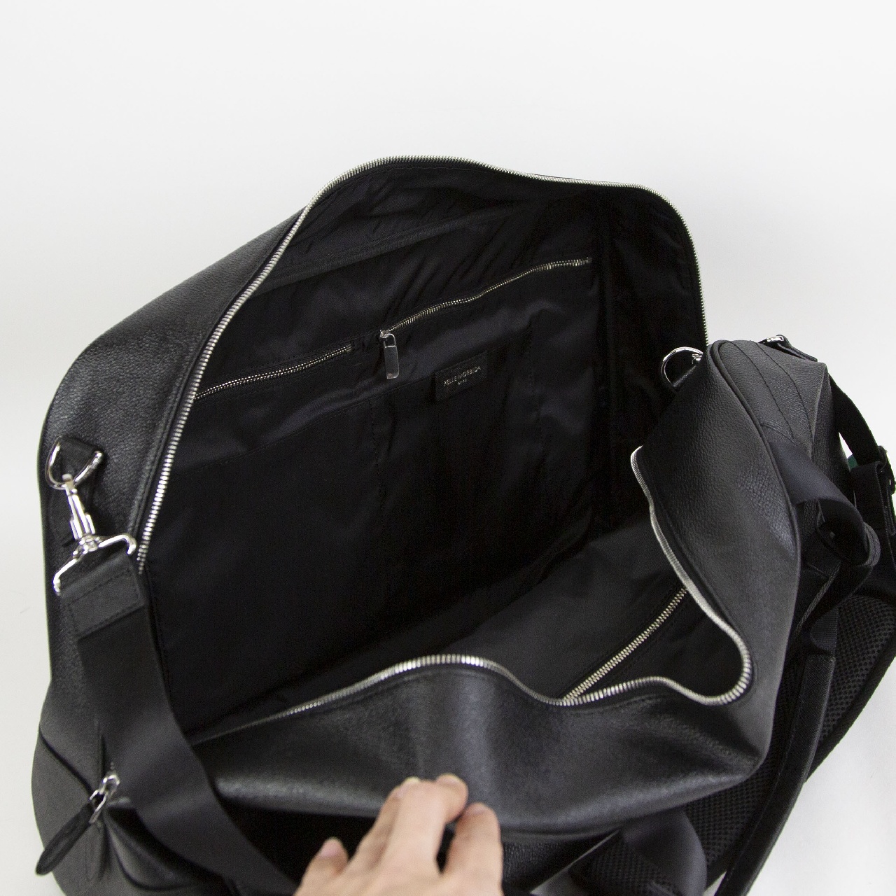シューズ、着替えなどのアイテムをしっかり収納できるボストンバッグ。スポーツにはうれしい撥水性のあるPVC素材を使用。 またショルダーストラップの肩当て部分にはクッション素材を取付けているので、重たい荷物のストレスを軽減します。 内装にも前胴、背胴とポケットをつけ、スッキリ収納できる仕様になっています。 GOLFシリーズで揃えてトータルコーディネートでおしゃれを楽しんだり、旅行やジムなど普段のスポーツ時にも重宝するボストンバッグです。