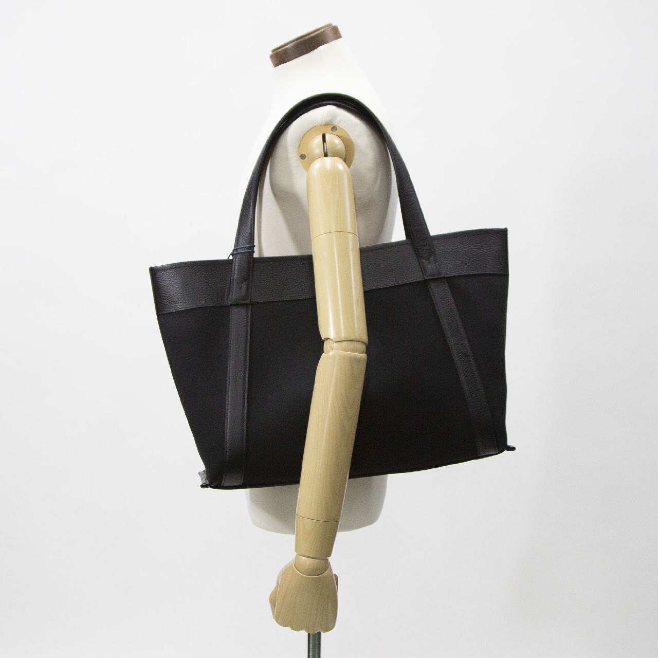 異素材のバイカラーがアクセントでカジュアルながらエレガントさも残したトートバッグです。