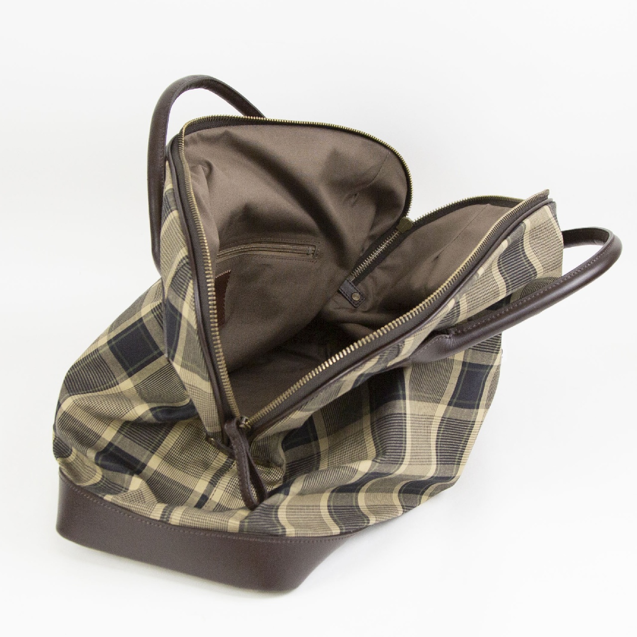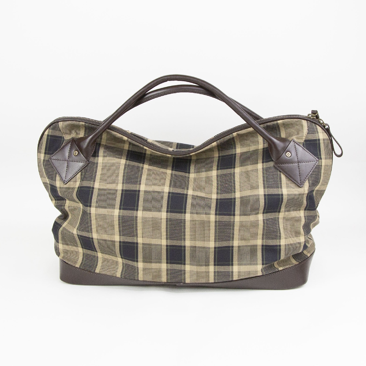 定番のボストンバックにチェック柄のモデルが新登場です。 デザインはサイズバランスやハンドルを出す位置や方向を計算することで物が入り重みが加わったときバック中央部がグッと窪み、肩に背負った時にしっくりなじむように出来ています。 しっかりと開き荷物の出し入れがとてもスムーズです。そこに鋲を打っているので安心してお使いいただけます。 そして見た目より軽いのもポイントです。旅行や出張におすすめです。