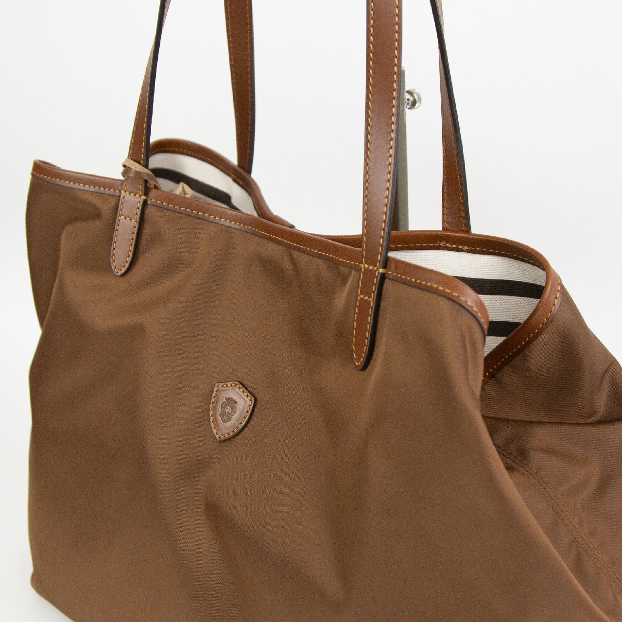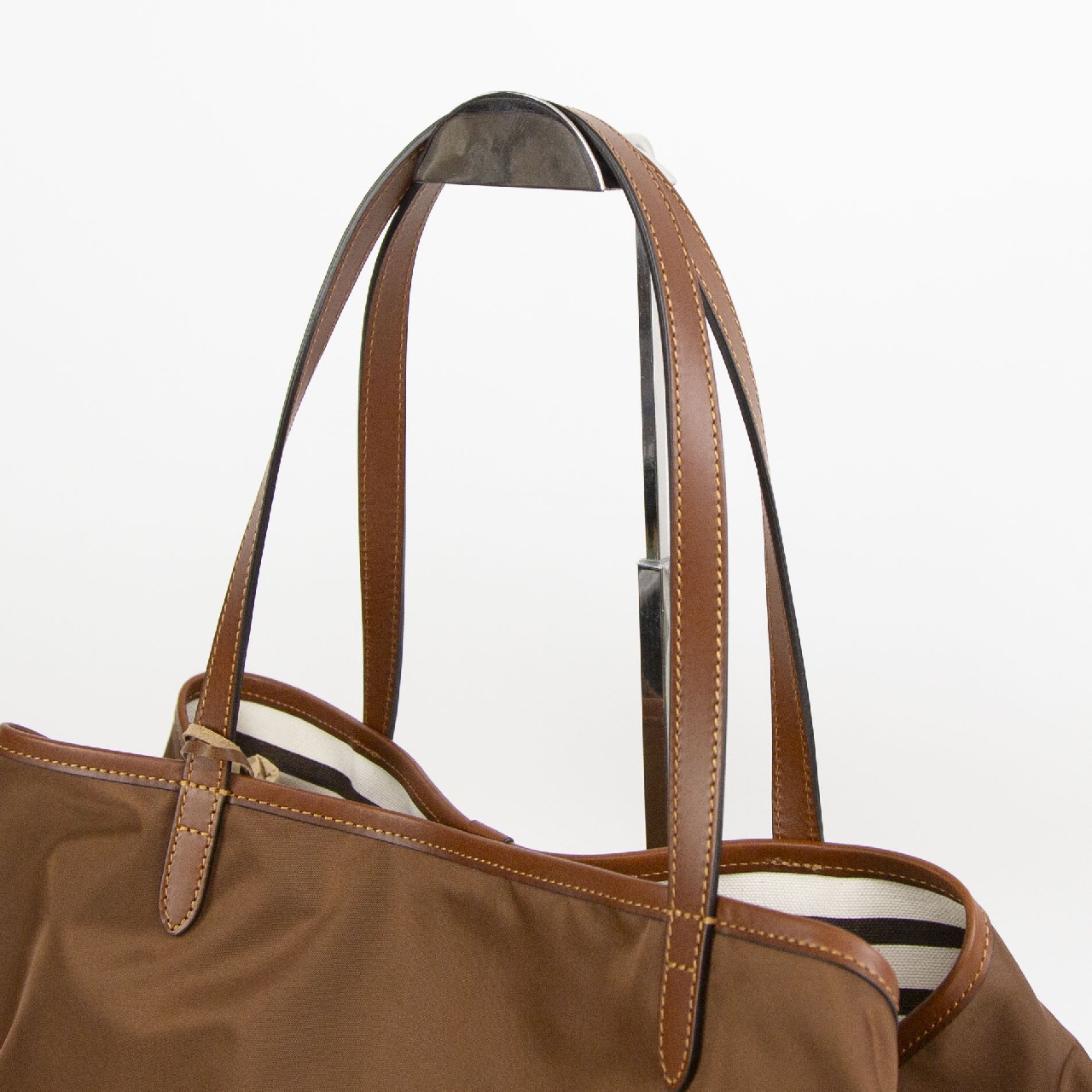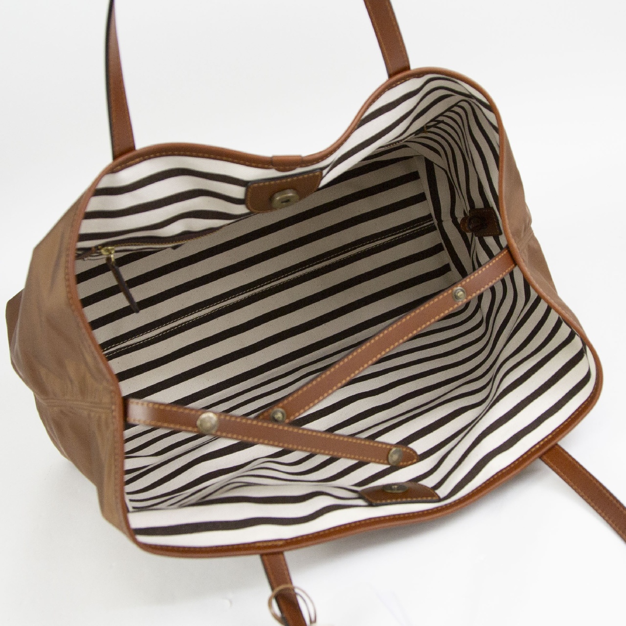 男性女性問わず使うことができる、シンプルなデザインのトートバッグ。ハンドルが約24cmと少し長く、男性でも余裕で肩掛けできる長さです。間口に付けられたレザーストラップは閉じることができ、バッグの表情が変化。閉じると台形になりクラシックなニュアンスで、開くと長方形型になり荷物の出し入れがスムーズです。また、2段階に調節可能なストラップは、未使用時には、内側のループに挿し込むことが可能です。肩掛けしやすいよう長くなったハンドルは、平手になっており、肩へのあたりが優しく、バッグは小脇にしっかり収まります。内側にはファスナーポケットが1つ付いており、小物の整理にも便利で、街でも、旅行でもぴったりな使い心地。シンプルでエイジレスなデザインは、コーディネートを選ばず、男性女性問わずお使いいただけます。