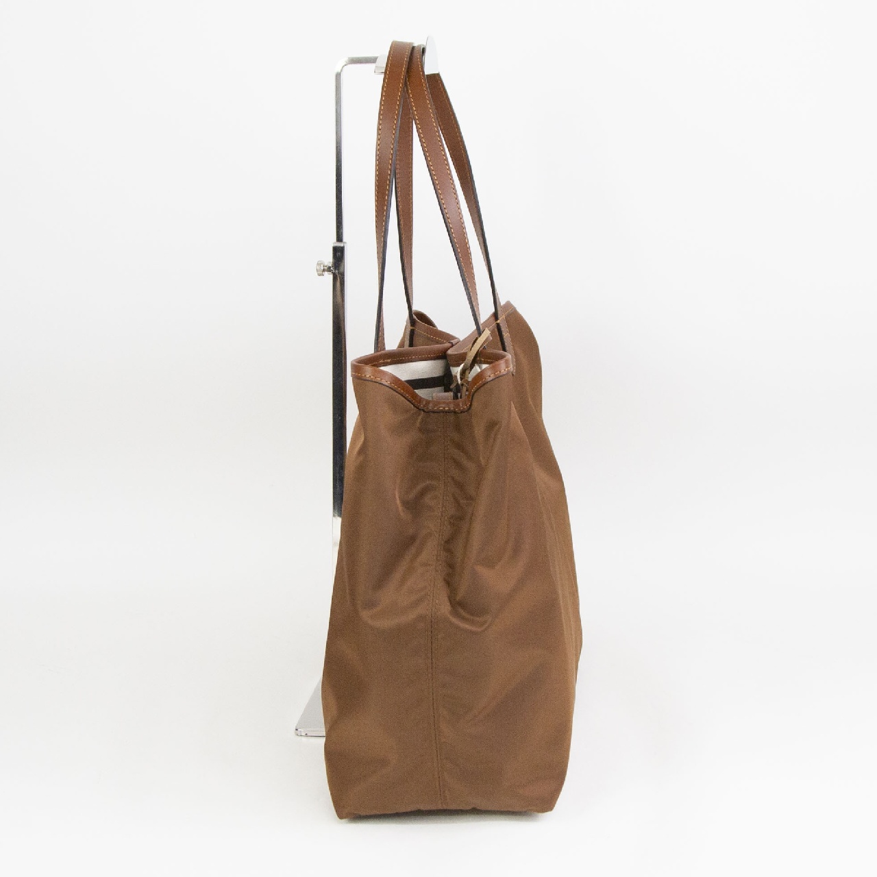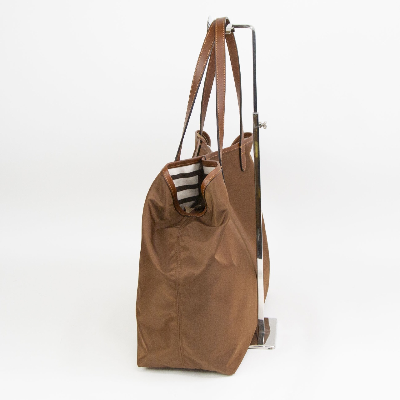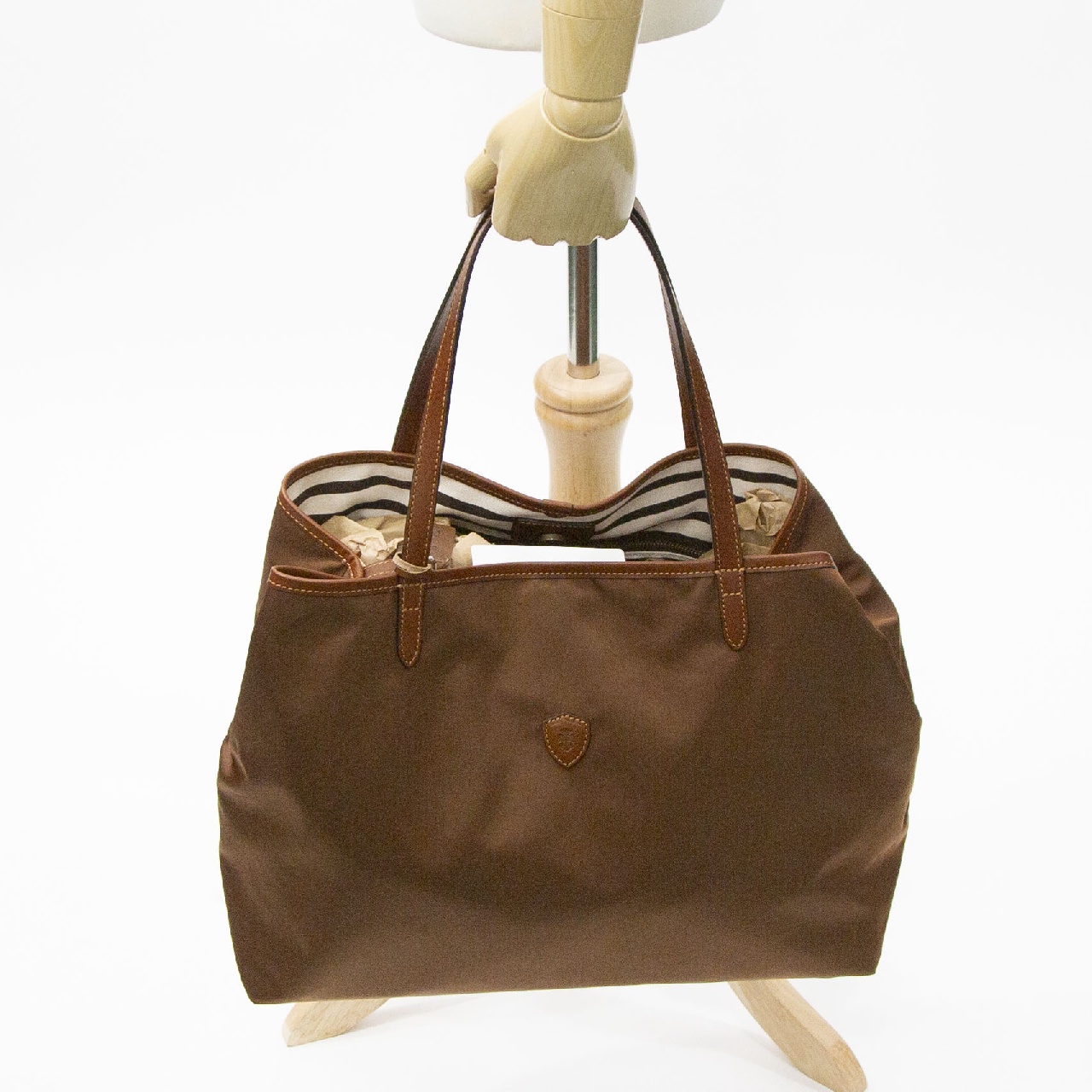 男性女性問わず使うことができる、シンプルなデザインのトートバッグ。ハンドルが約24cmと少し長く、男性でも余裕で肩掛けできる長さです。間口に付けられたレザーストラップは閉じることができ、バッグの表情が変化。閉じると台形になりクラシックなニュアンスで、開くと長方形型になり荷物の出し入れがスムーズです。また、2段階に調節可能なストラップは、未使用時には、内側のループに挿し込むことが可能です。肩掛けしやすいよう長くなったハンドルは、平手になっており、肩へのあたりが優しく、バッグは小脇にしっかり収まります。内側にはファスナーポケットが1つ付いており、小物の整理にも便利で、街でも、旅行でもぴったりな使い心地。シンプルでエイジレスなデザインは、コーディネートを選ばず、男性女性問わずお使いいただけます。