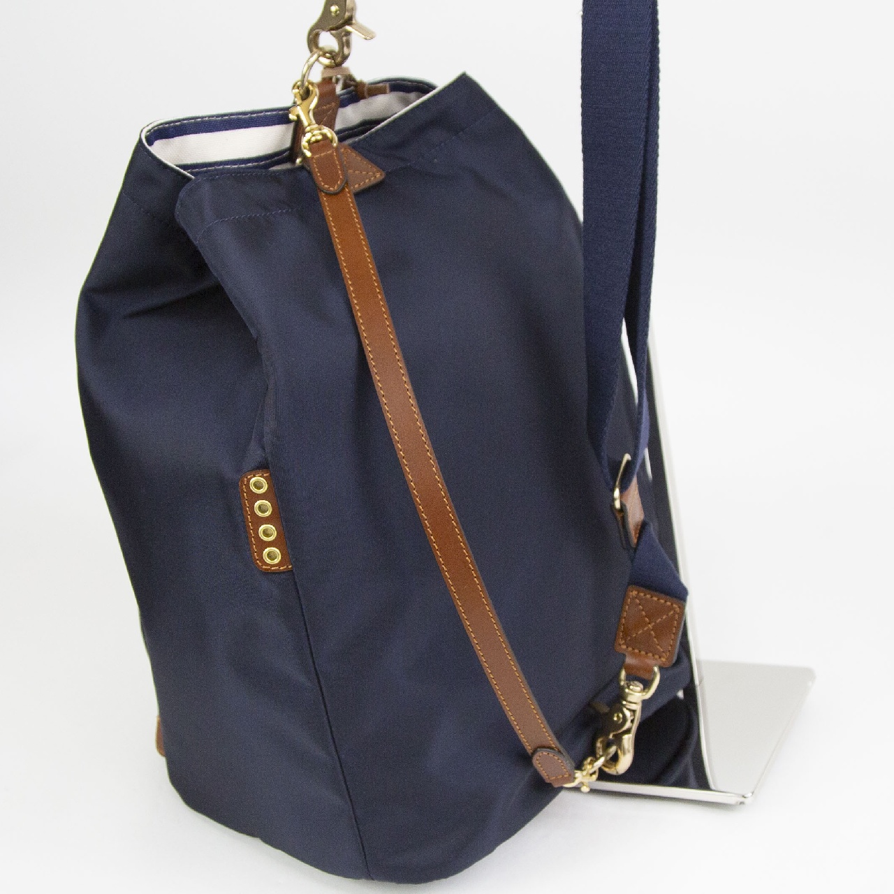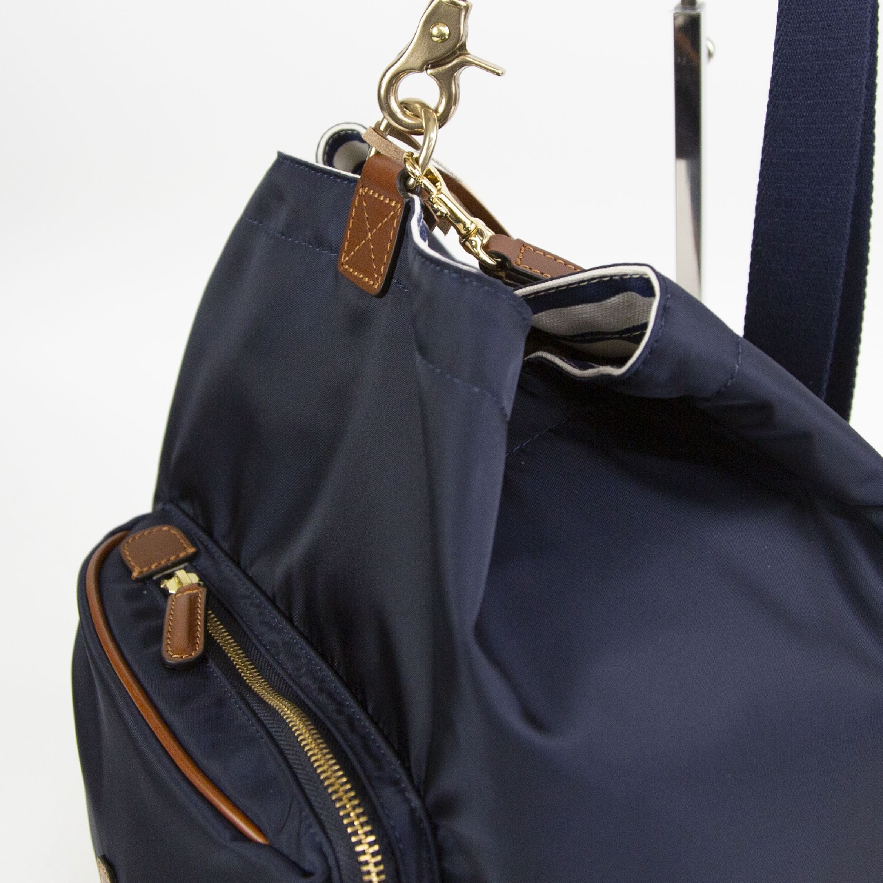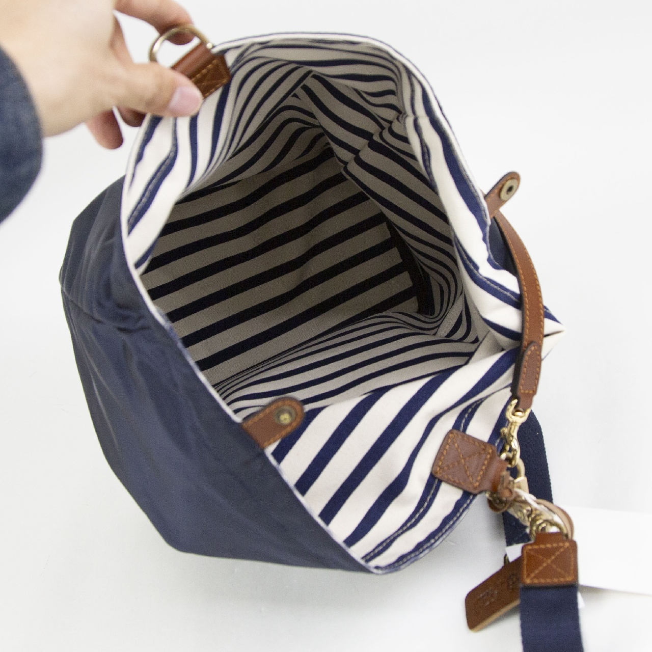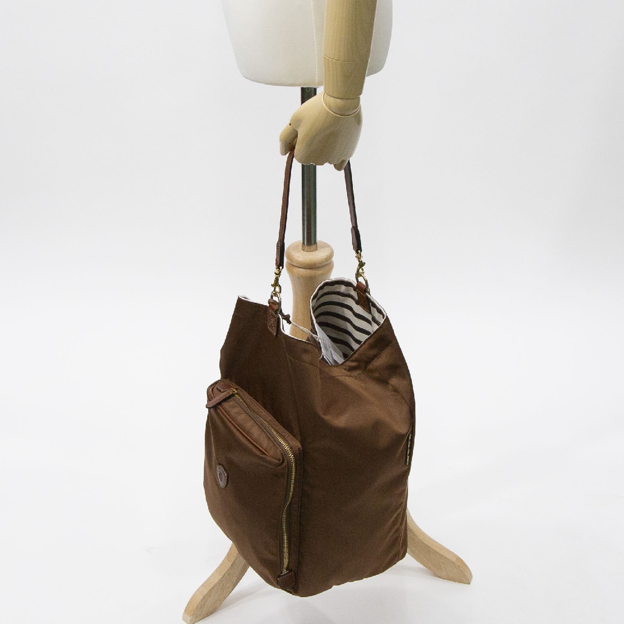 定番のナイロンにボーダーの裏地を採用したモデルになります。 ボリュームのある作りで荷物もしっかり収納していただけます。 ストラップの付け替えで手持ちとショルダーの2WAY仕様でコーディネートに合わせてお持ちいただけます。