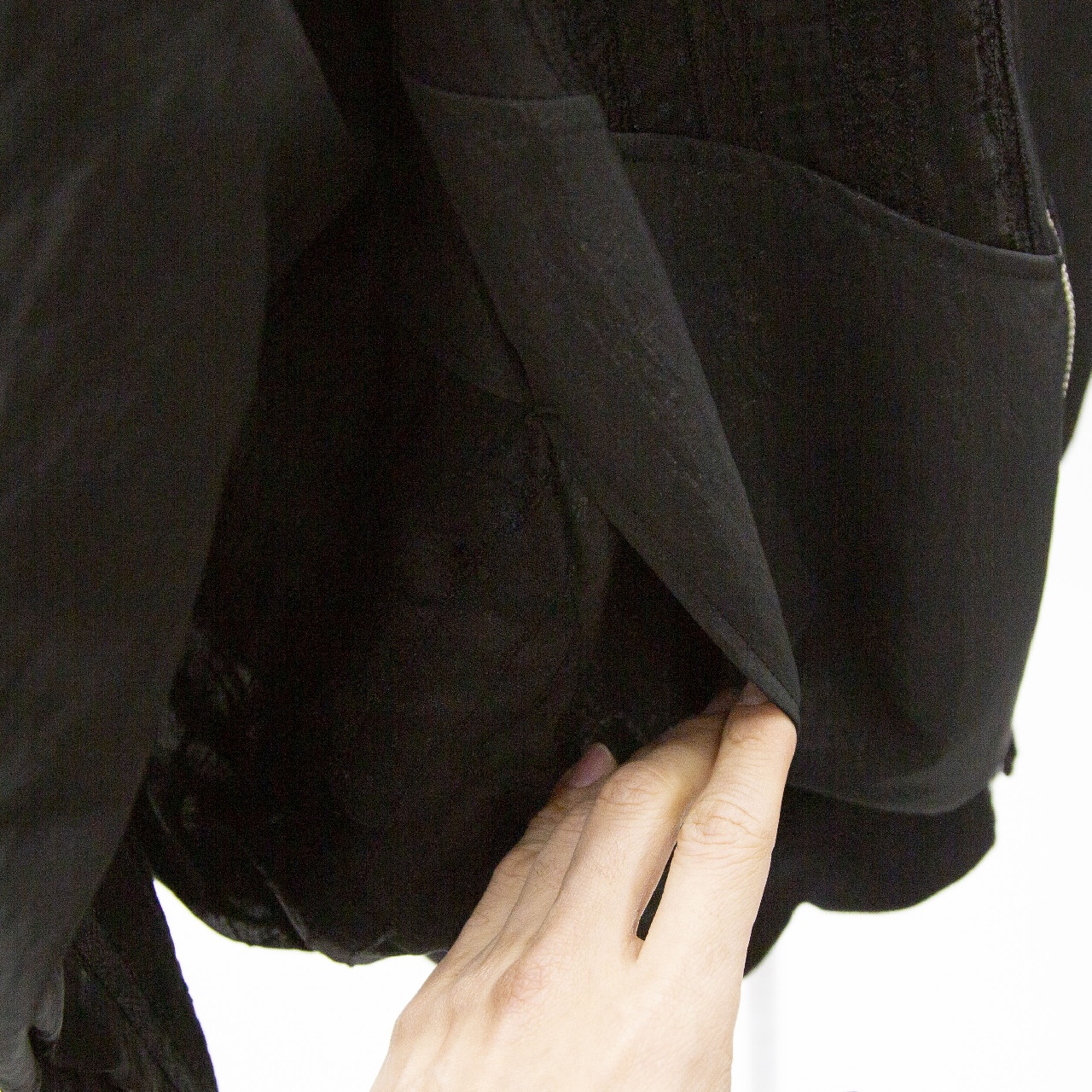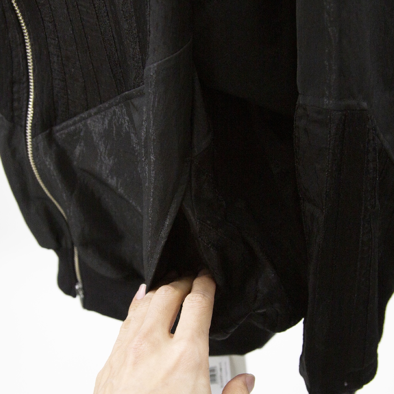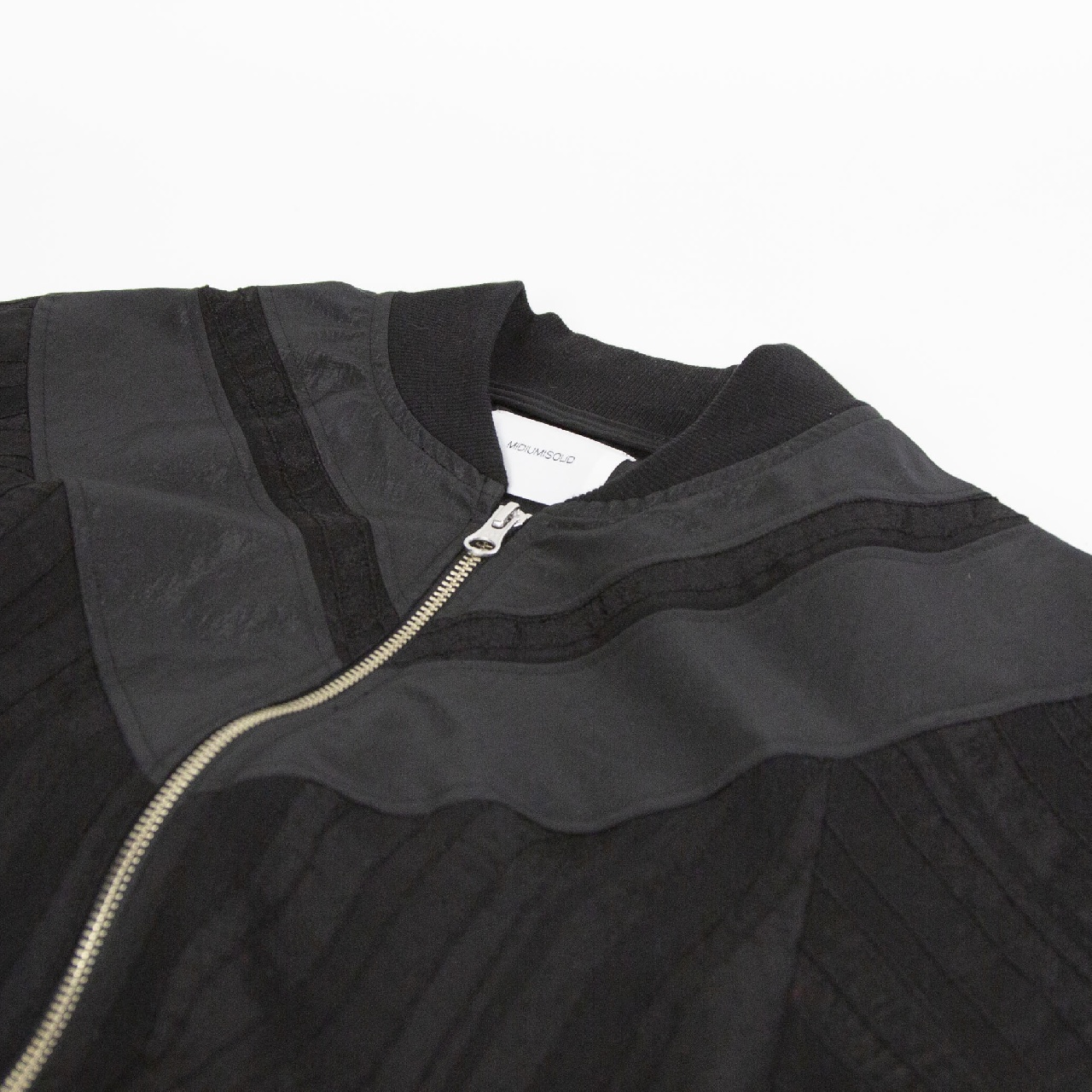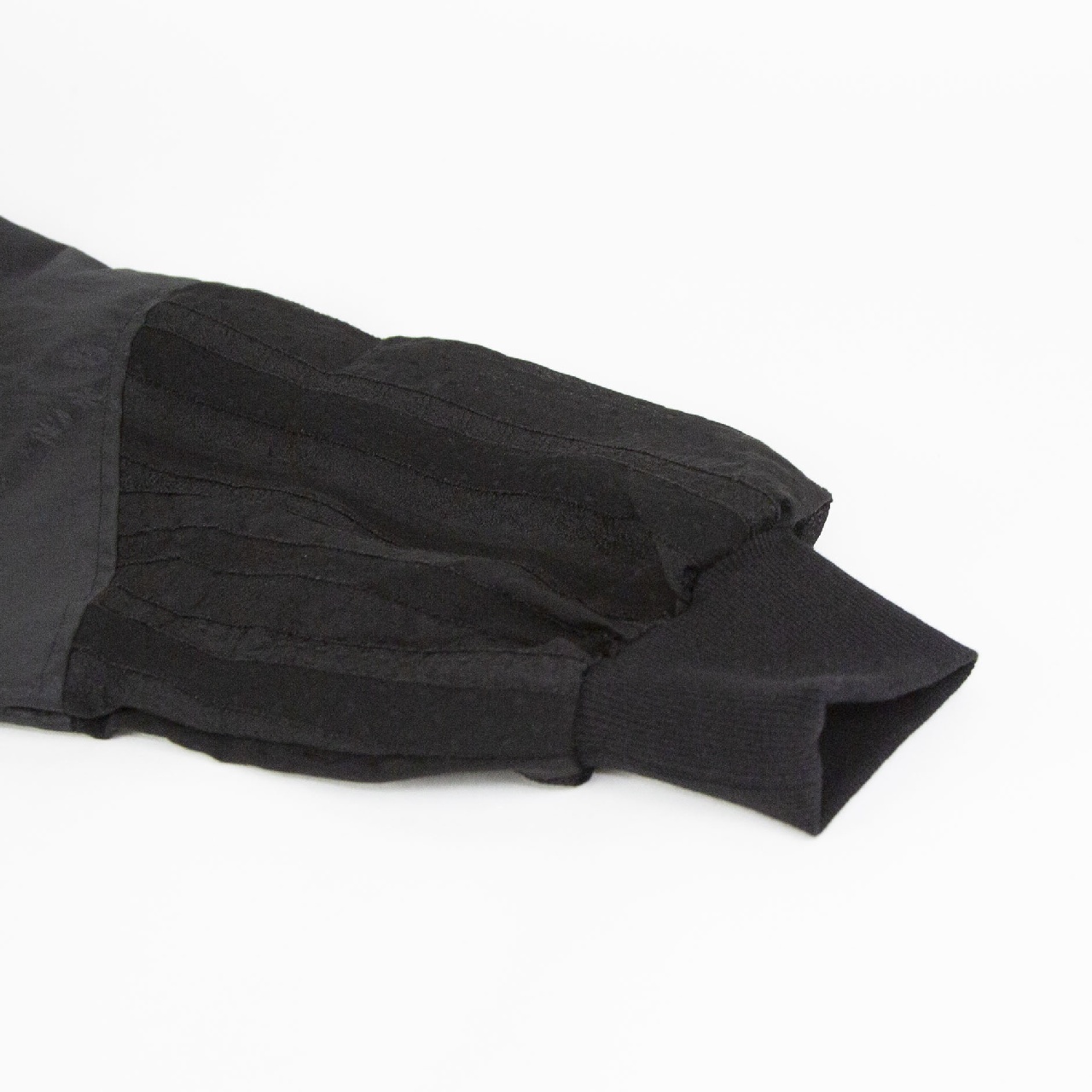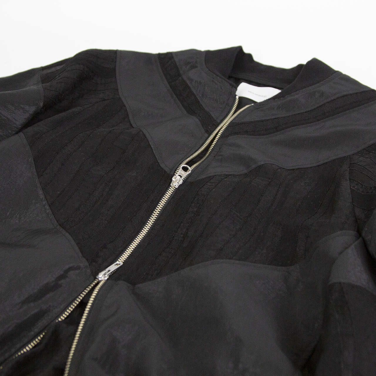艶のあるタフタ素材+甘いシアーレースを組み合わせたデザインのブルゾン。最大のポイントはたっぷりとボリューム感のあるバックスタイルです。自然なふんわりとした動きのあるシルエットでダブルジップ仕様。 季節の変わり目のちょっとした羽織りアイテムとしてオススメの1枚です。