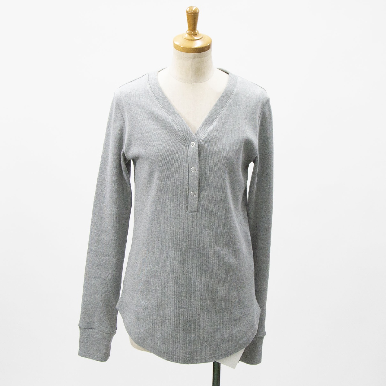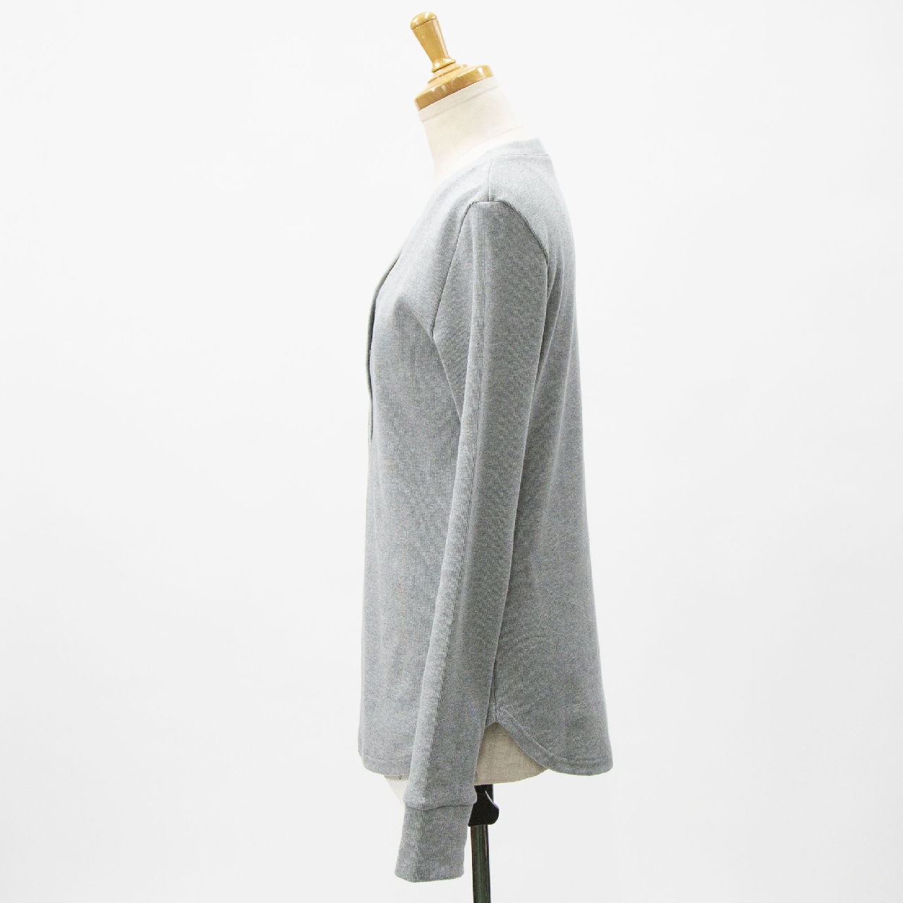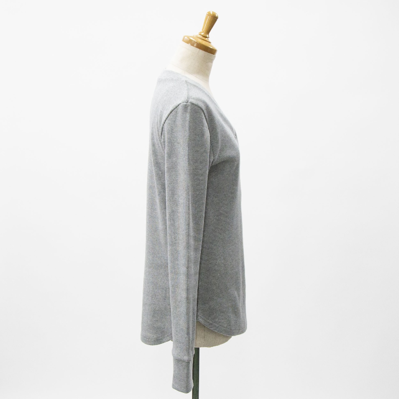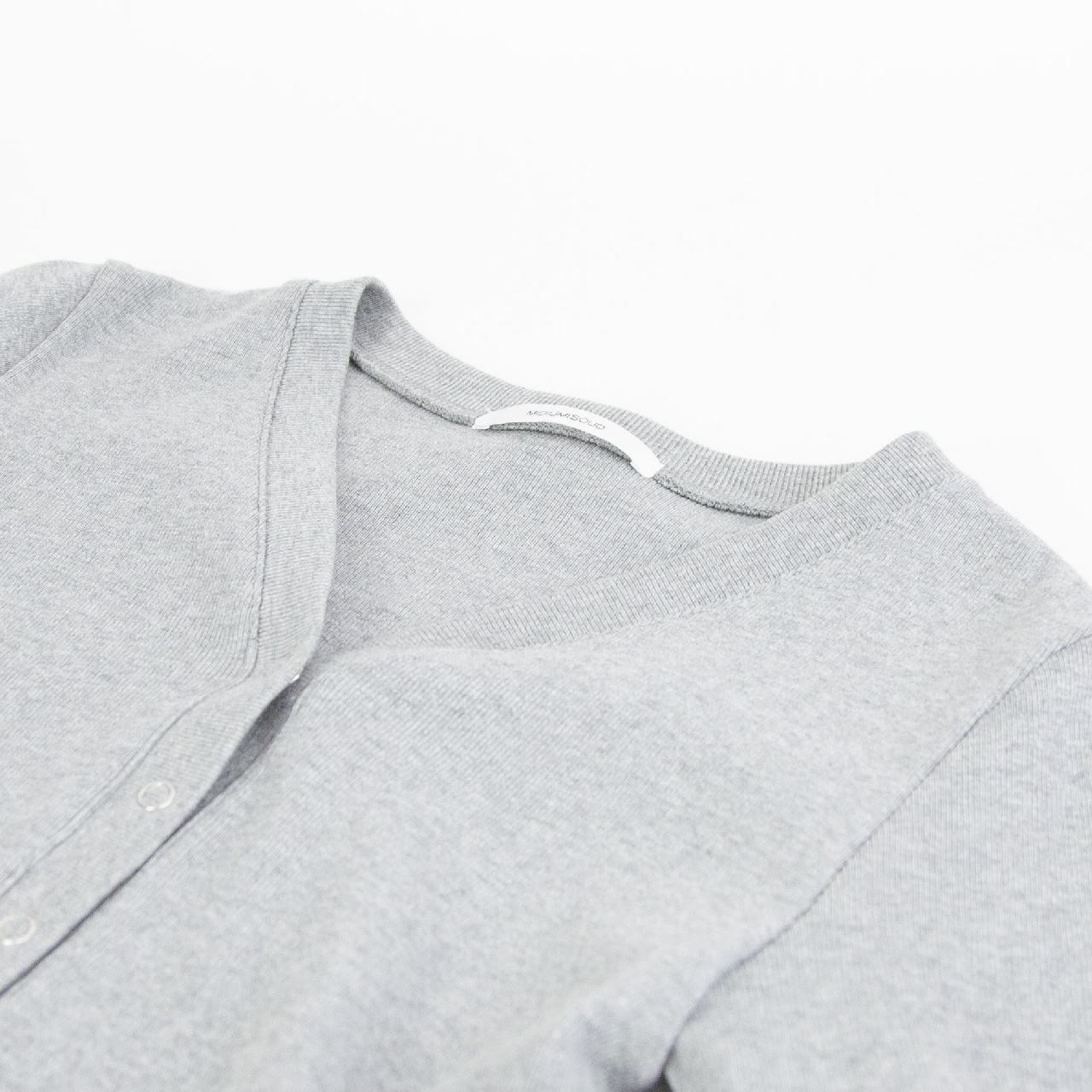 MIDIUMISOLIDのNEWベーシックシリーズ、太番手のニットライクなフライス生地のリブヘンリーネックプルオーバーです。Vネックの首周りは女性らしいデザイン。カジュアルな素材なのに品や抜け感のある1枚です。コンパクト目のジャストサイズでボトムに合わせやすいのもポイント。